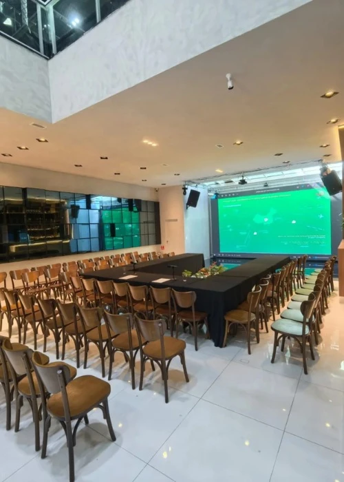 Um espaço moderno e tecnológico, perfeito para criar momentos inesquecíveis! Com elementos em LED, ambientes instagramáveis, cubos de LED, escorregador de LED, pista de LED exclusiva, cama elástica, brinquedos em neon e VR (realidade virtual)